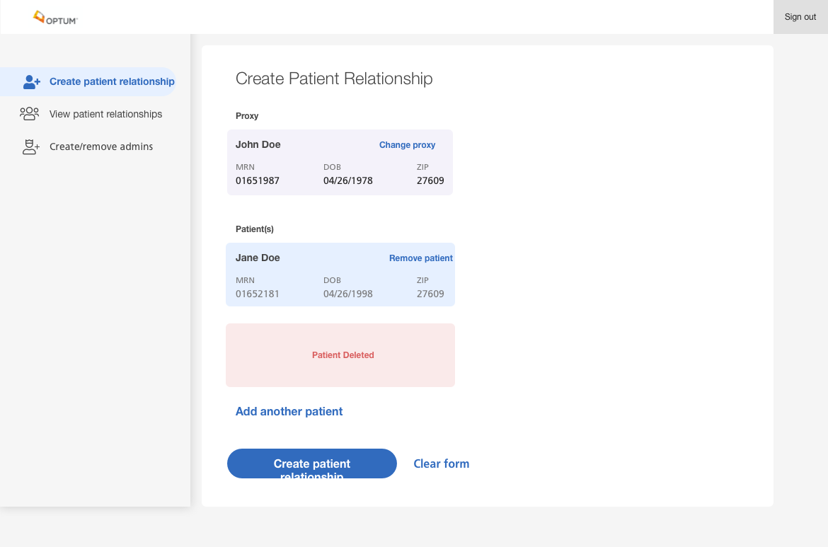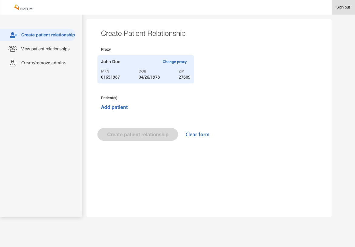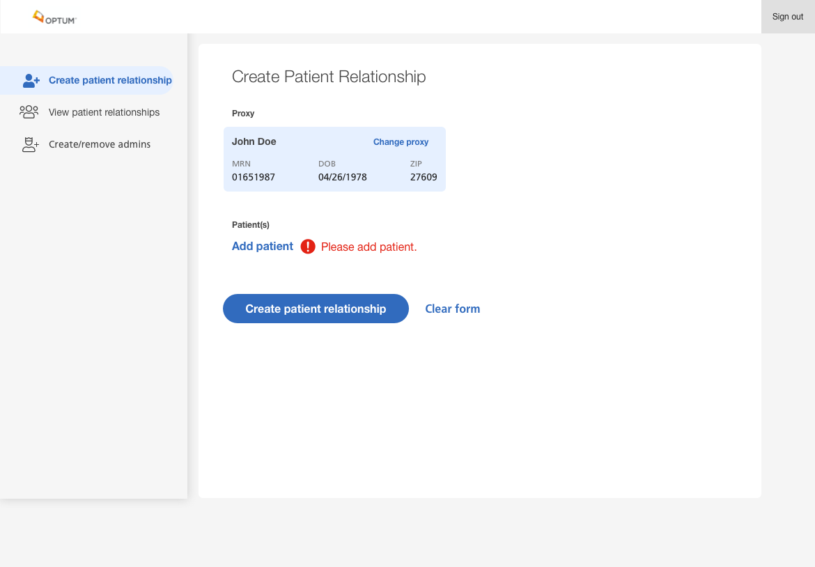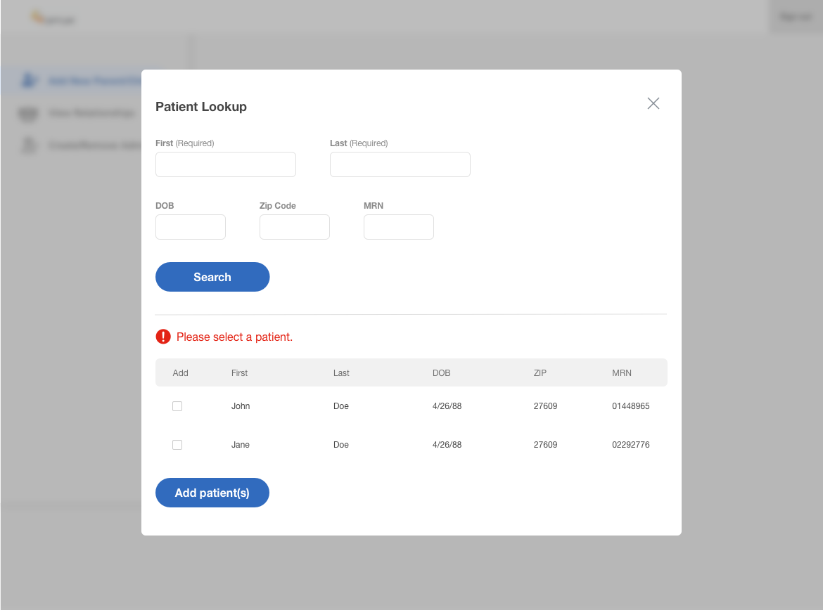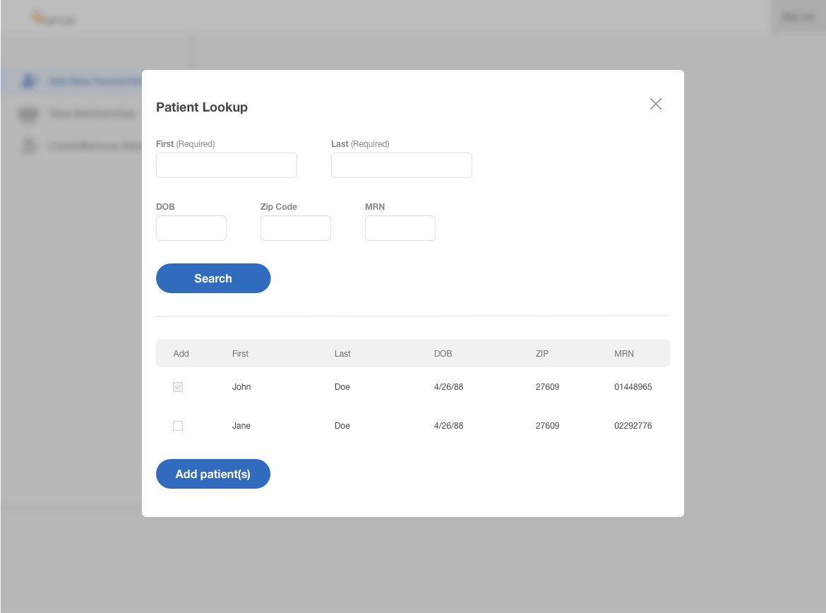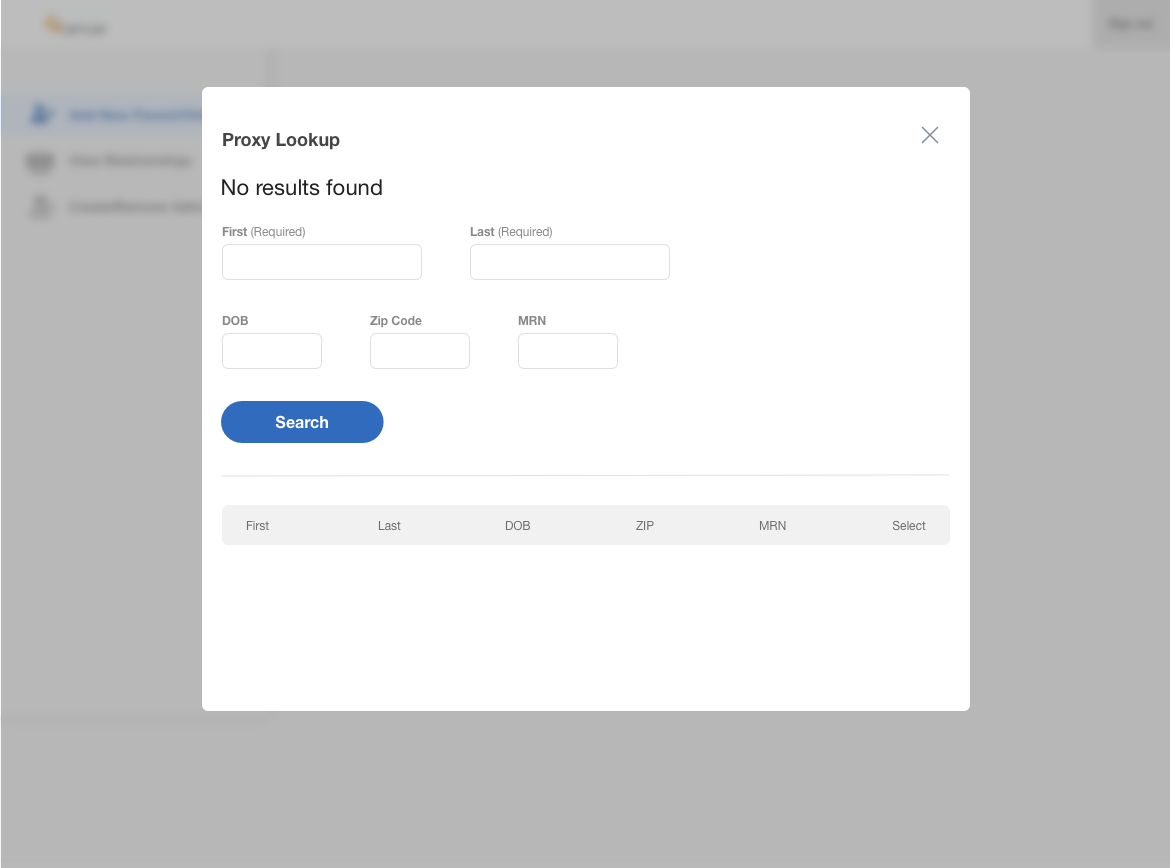 This first set of screens is specifically concerned with finding the appropriate patients and their proxies and creating a relationship between them.